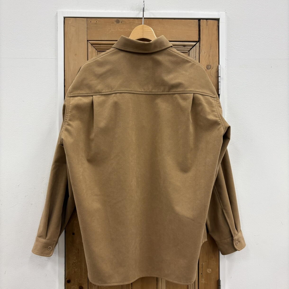 フェイクスエード素材を使用しており、一枚着としても羽織りとしても使えるシャツブルゾンです!
