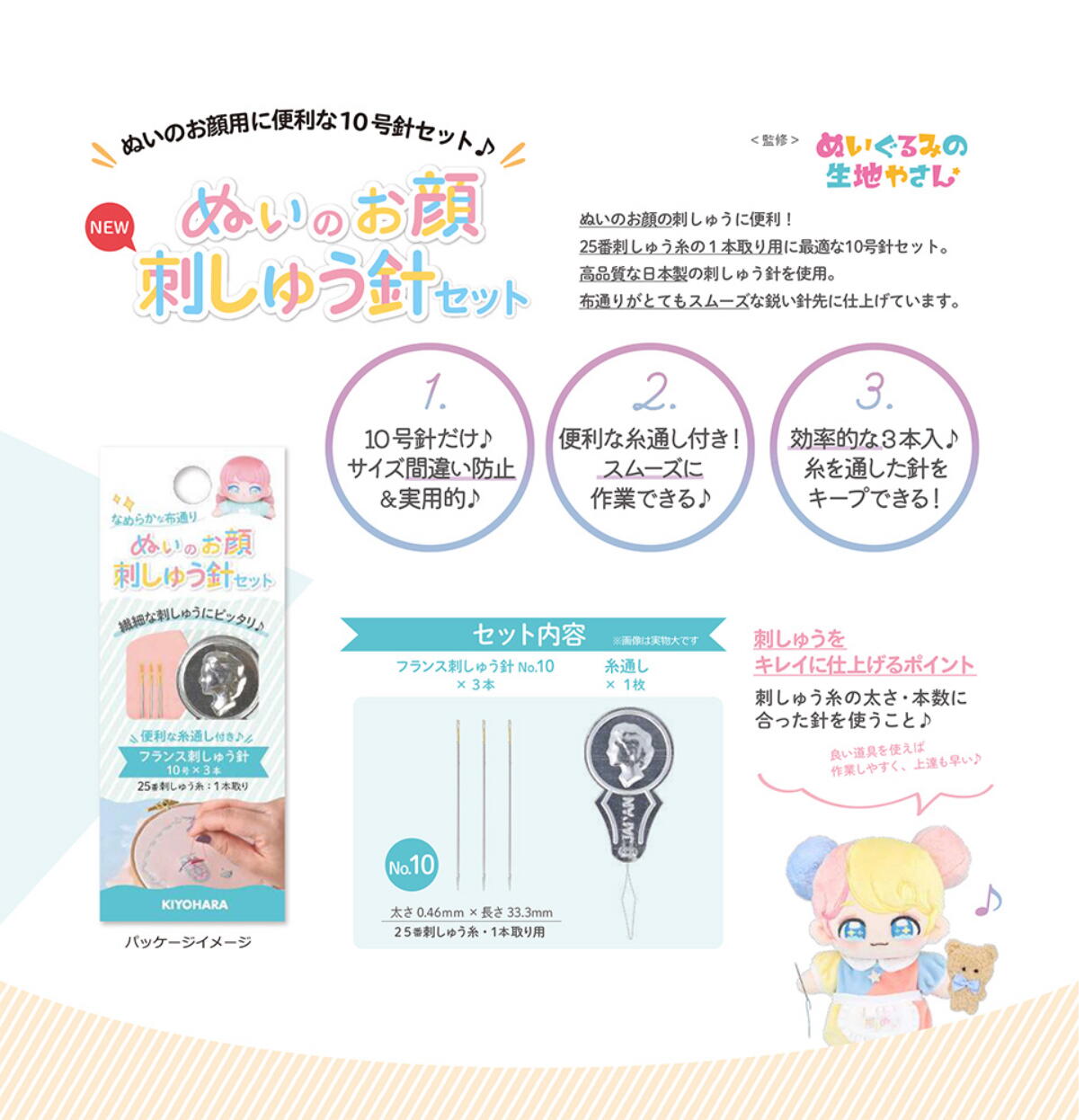 ぬいのお顔刺しゅうするのに使いやすい10号の刺しゅう針セットも同時入荷。