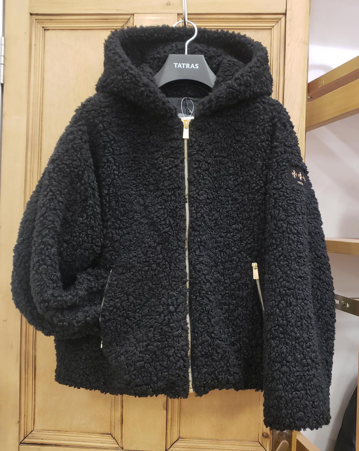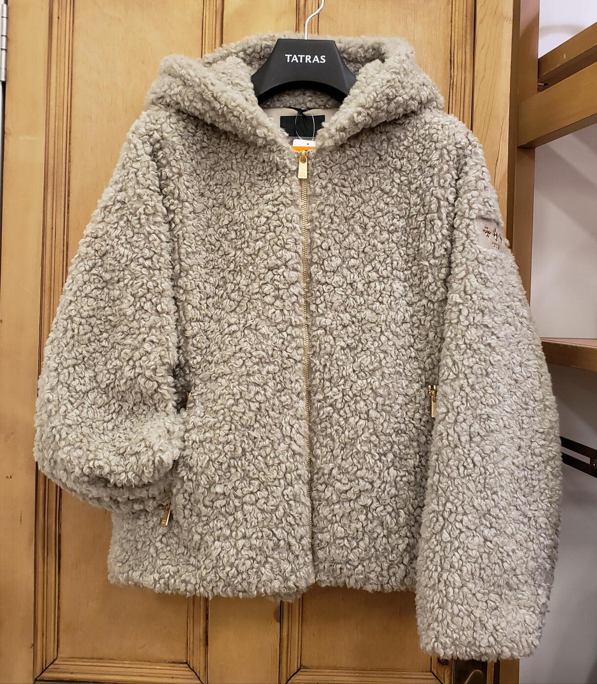 本日は〔TATRAS〕レディースアイテム、シープ調ボアのフード付きブルゾンのご紹介です♪
