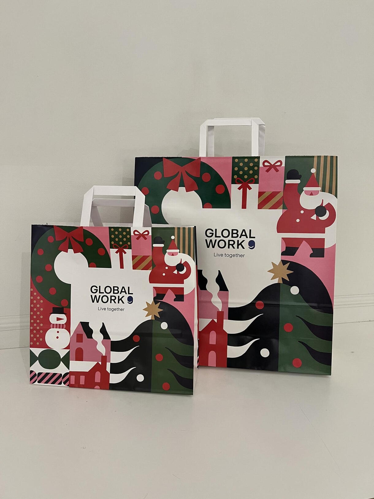 クリスマス限定ショッパーを配布いたします☆今年は、ツリー・サンタ・雪だるまなどみんなが連想するクリスマスの想いを詰め込んだグラフィカルなイラストで「みんなを笑顔に。」