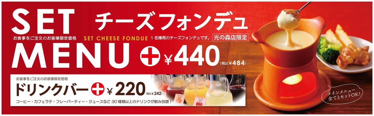 チーズフォンデュセット 440円(税抜) 484円(税込)