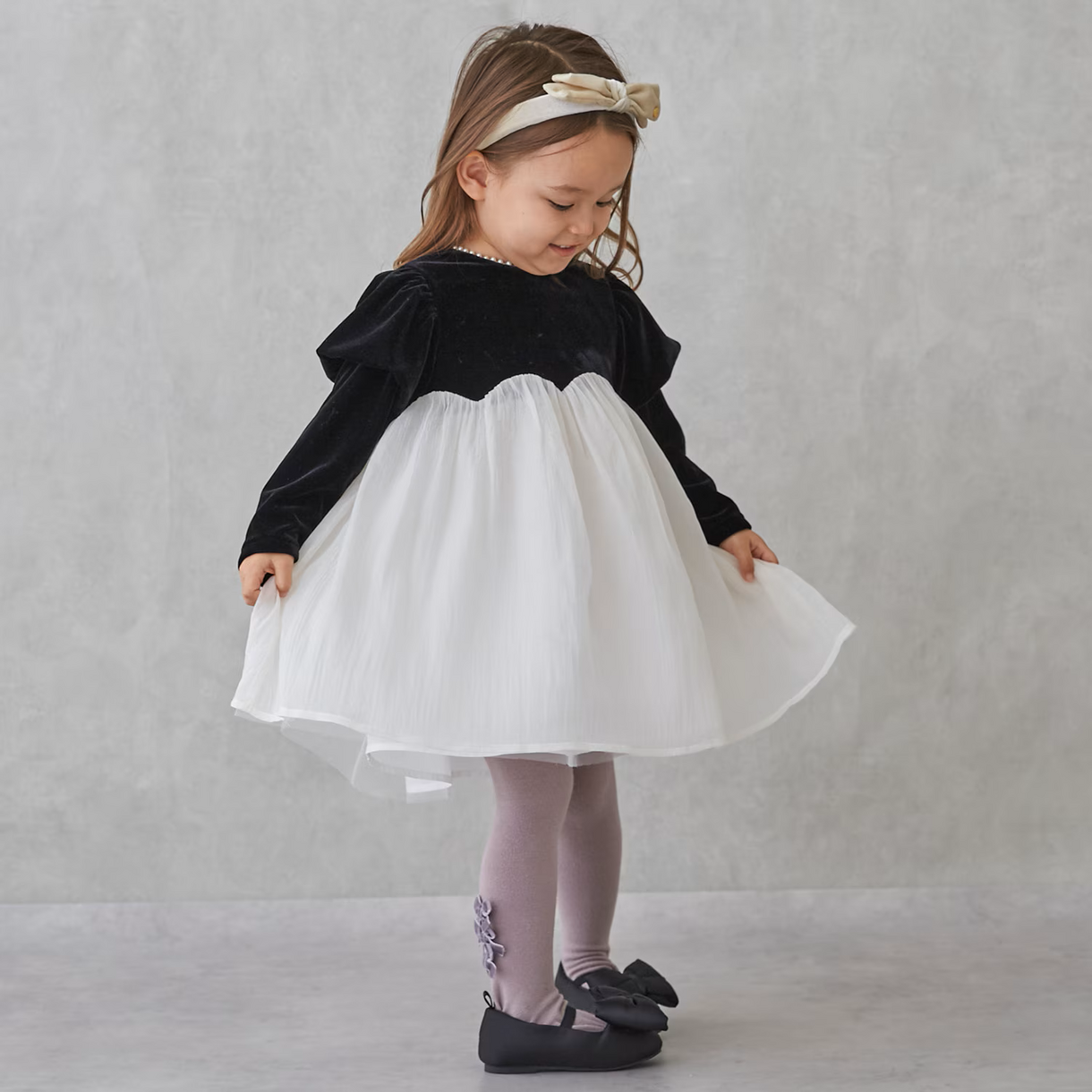 スカート部分にシフォンを取り入れた華やかな印象のワンピースです!
