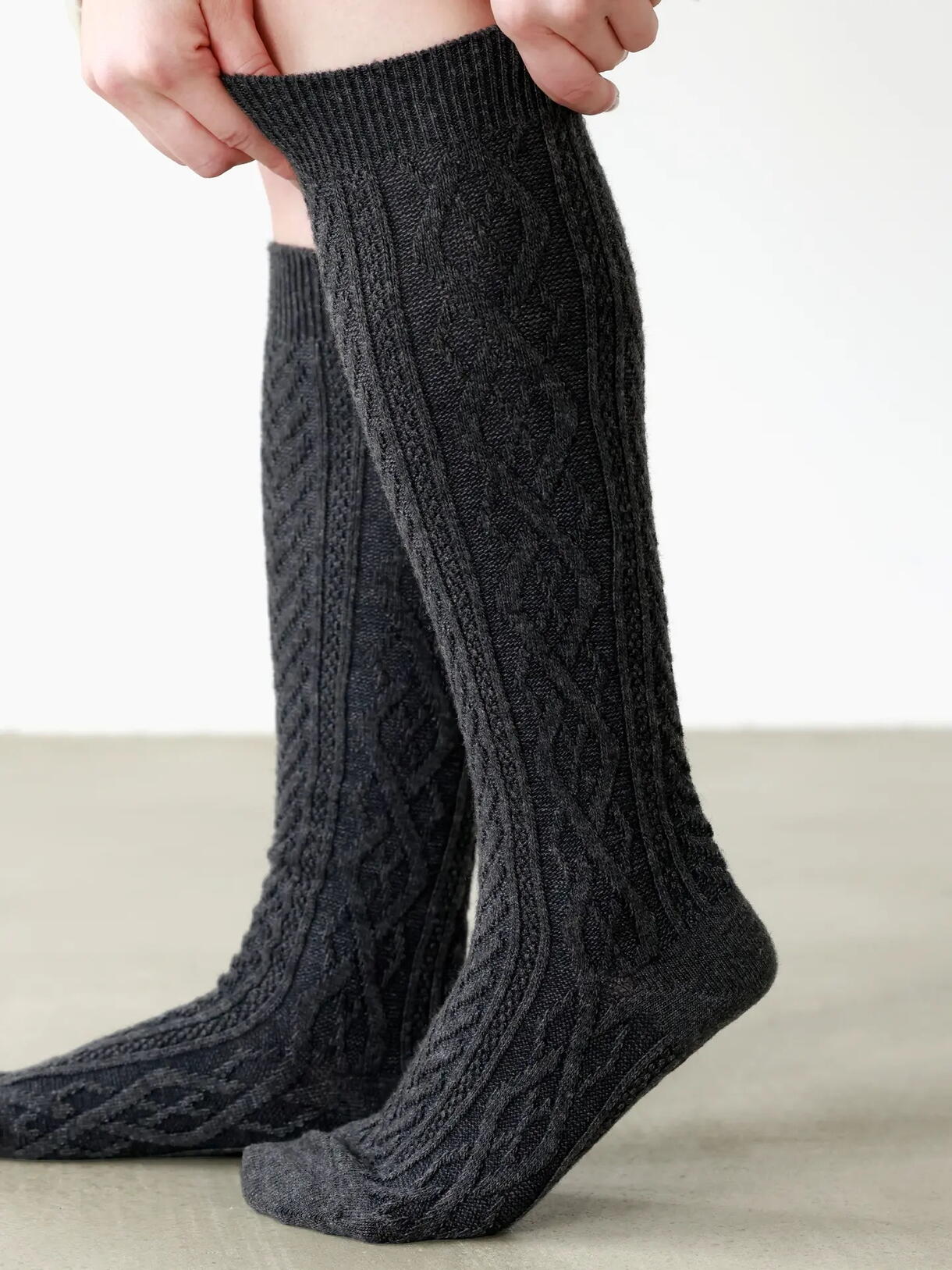 ★紡毛ダイヤケーブルハイソックス