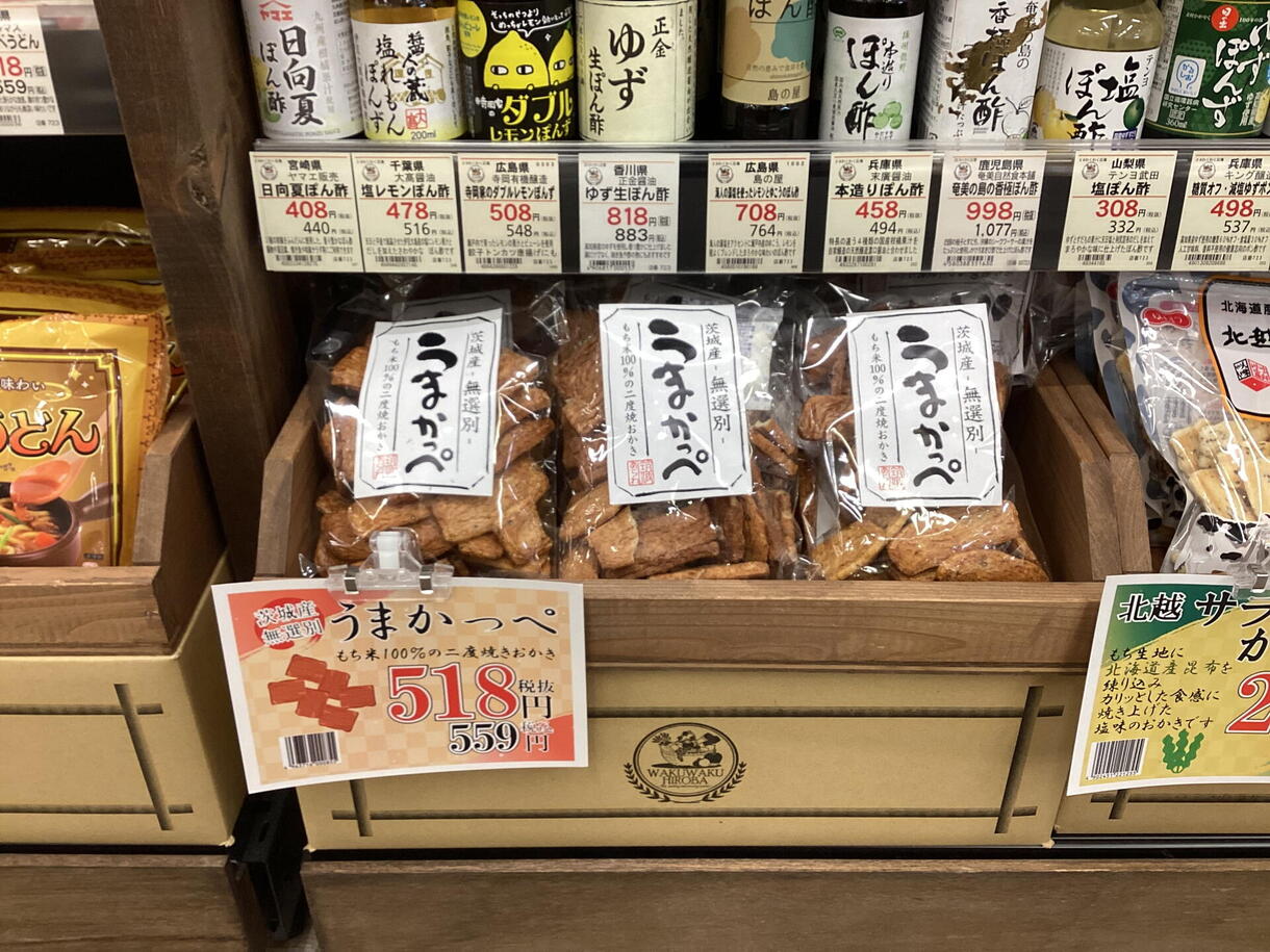 国産もち米100%の二度焼きおかき うまかっぺです。