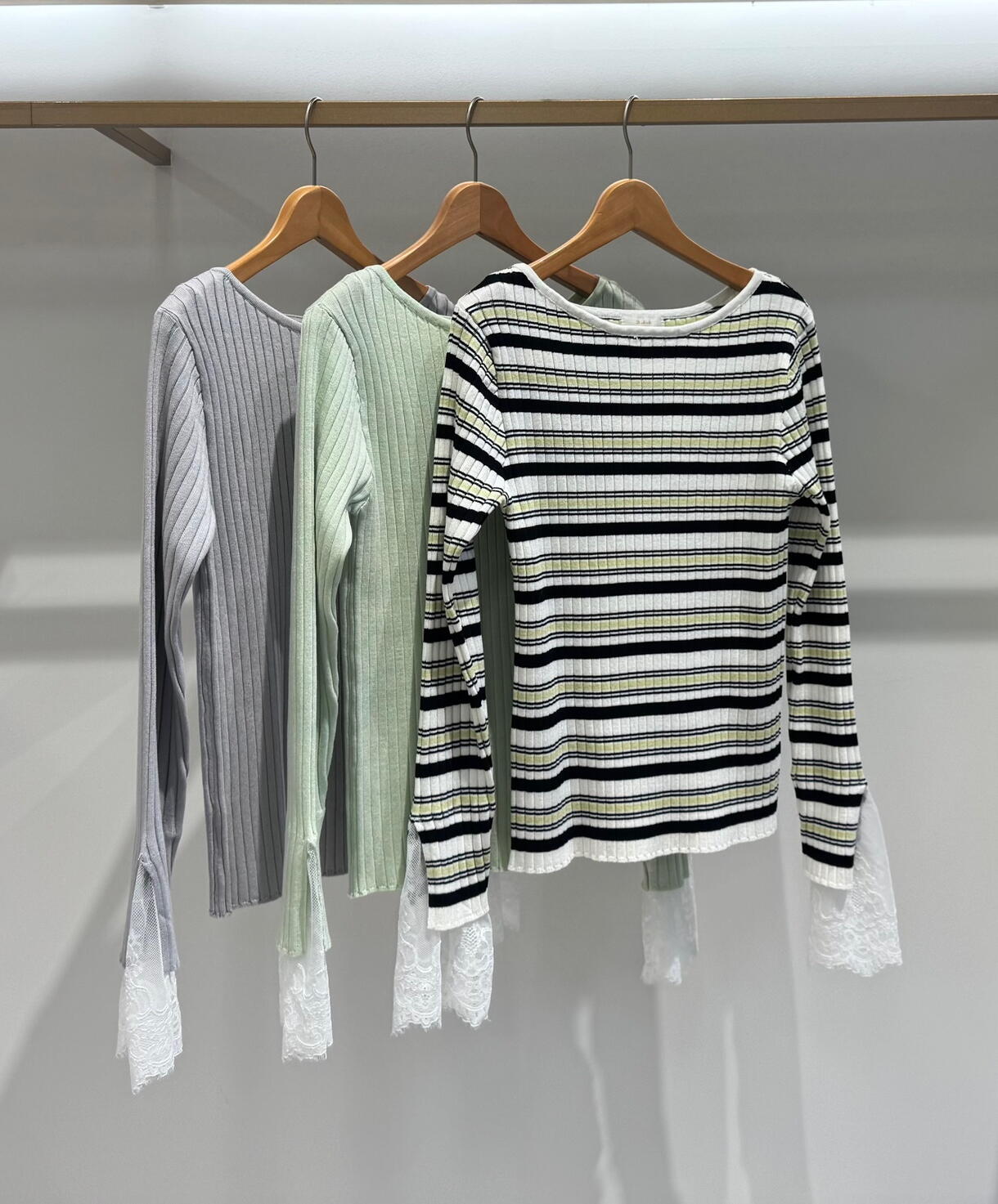 袖口からスカラップレースがのぞくフェミニンなデザインのワイドリブニットが入荷いたしました♪