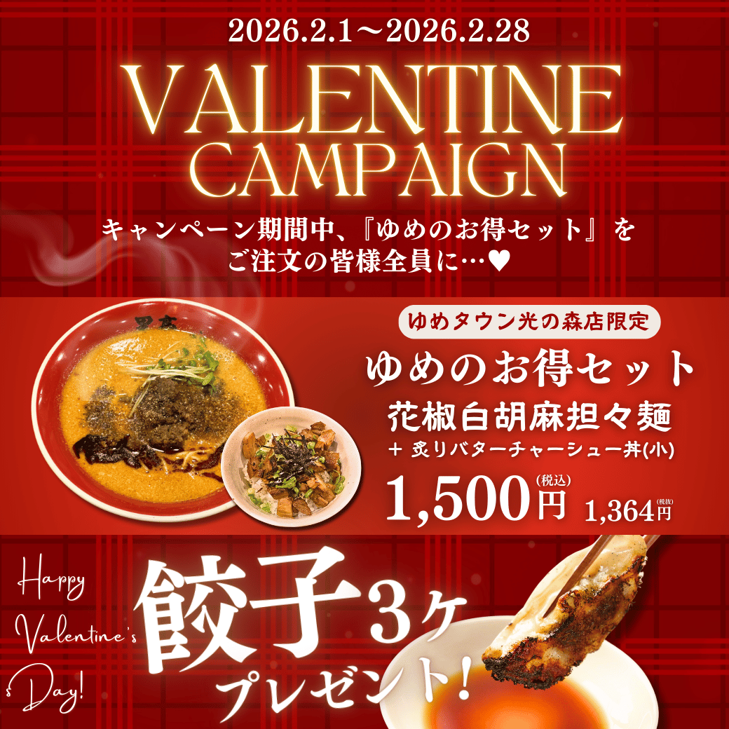 ゆめタウン光の森店 \今だけ餃子が付いてくる!/ゆめタウン光の森店だけの特別なバレンタイン!
