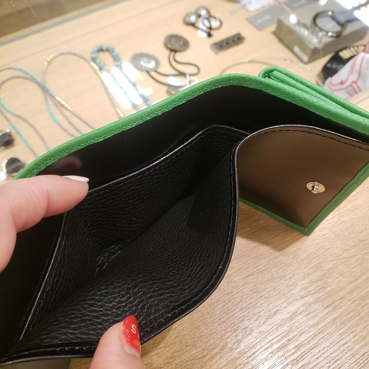 手のひらサイズで、お札・小銭・カード入れと、コンパクトながらも使い勝手の良い作りとなっています。