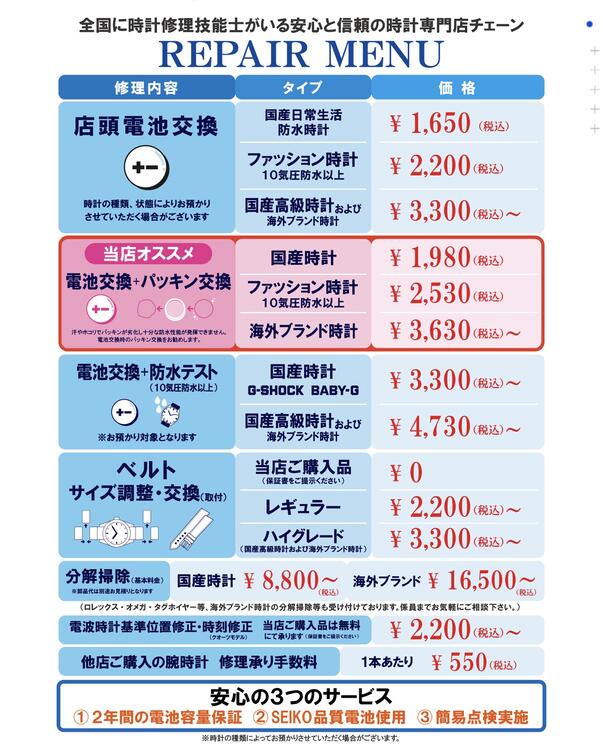 他店にてご購入の電池交換や修理メンテナンスなども行っておりますので