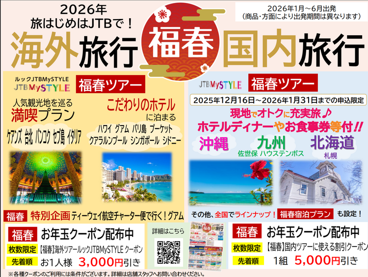 【取扱商品】JTBエース(国内)・JTBルック(海外)・他社パッケージ・JR券・ギフト券など