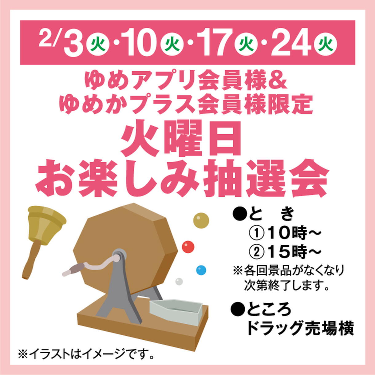 ゆめアプリ会員様&ゆめかプラス会員様限定 火曜日お楽しみ抽選会