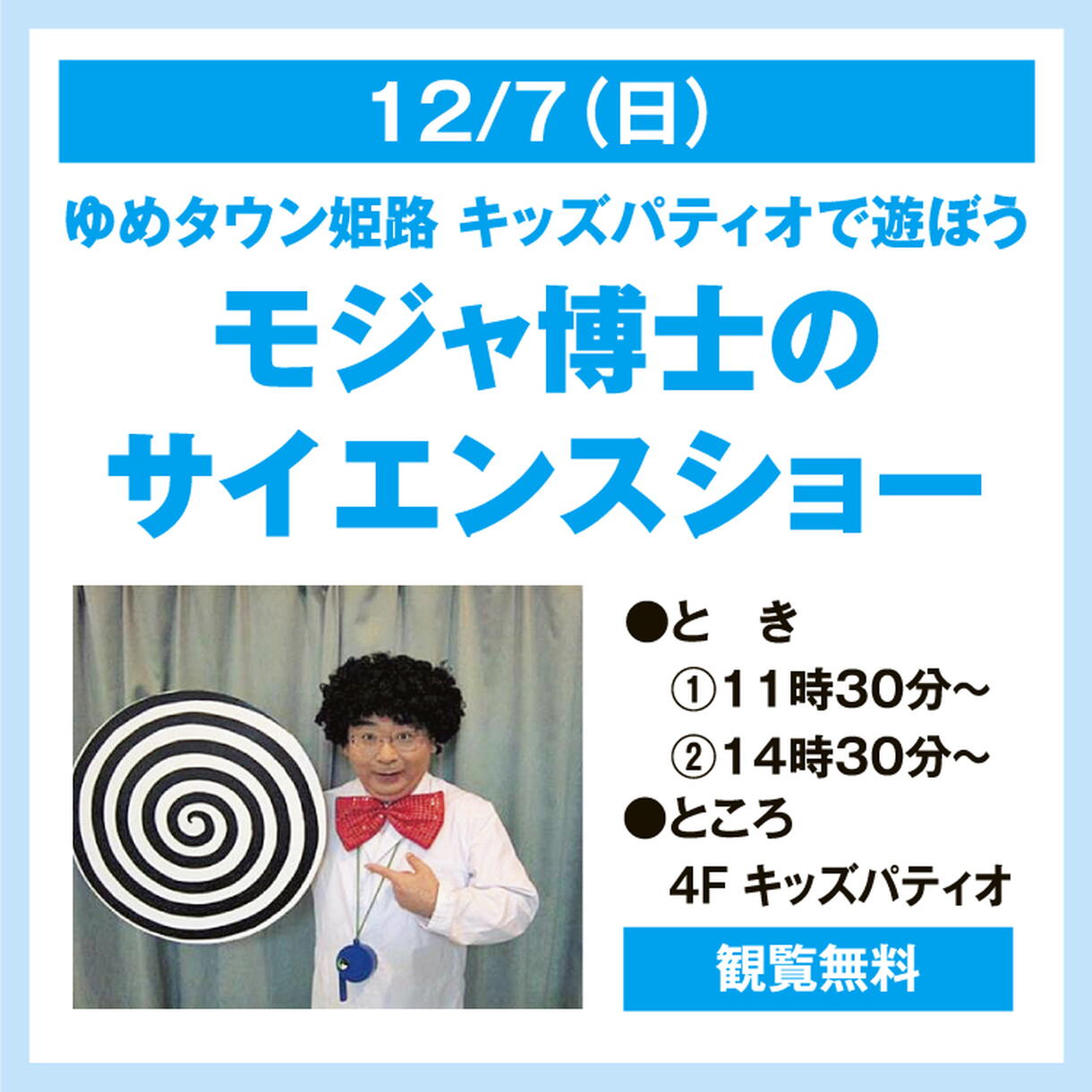 ゆめタウン姫路 キッズパティオで遊ぼう モジャ博士のサイエンスショー