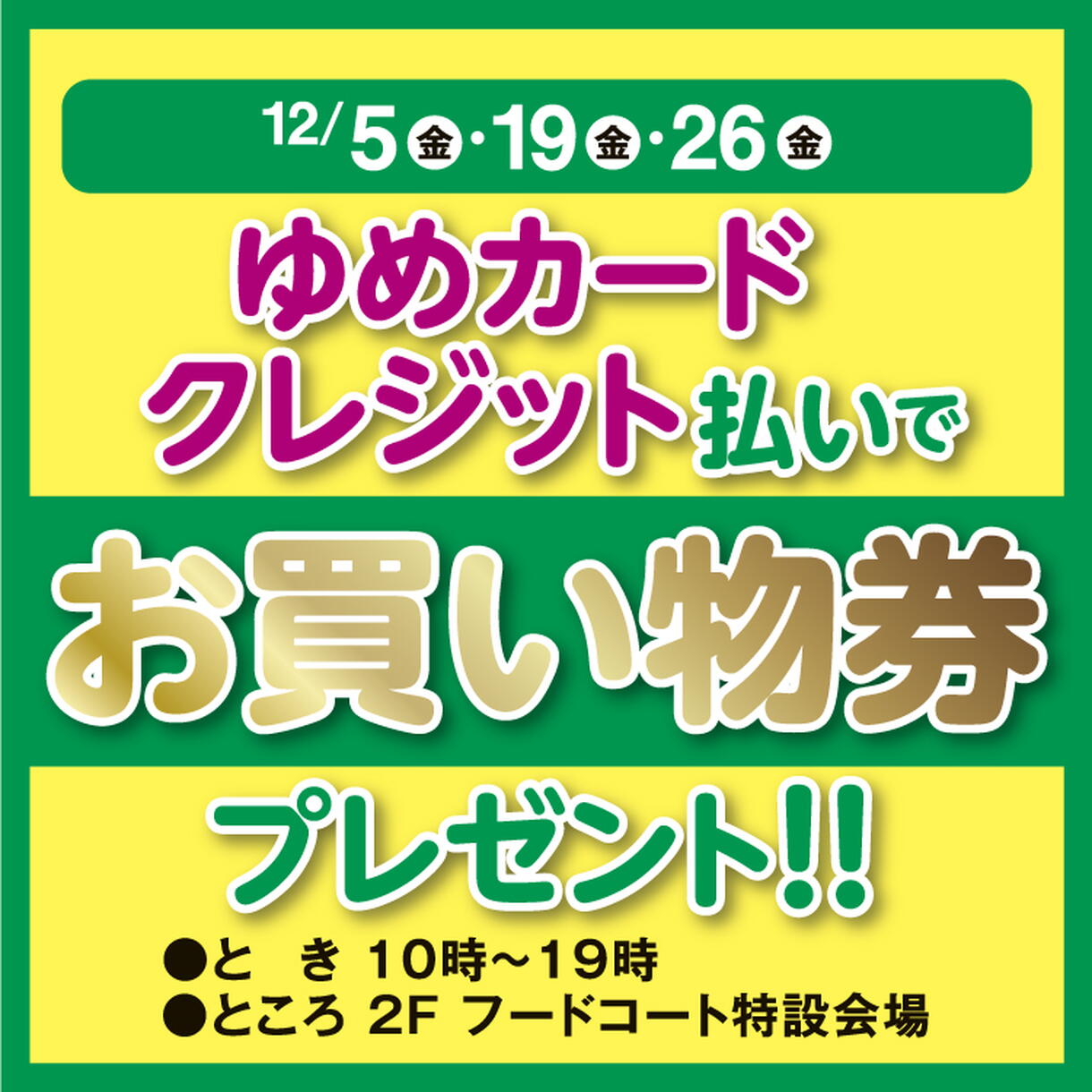 ゆめカードクレジット払いでお買い物券プレゼント!!