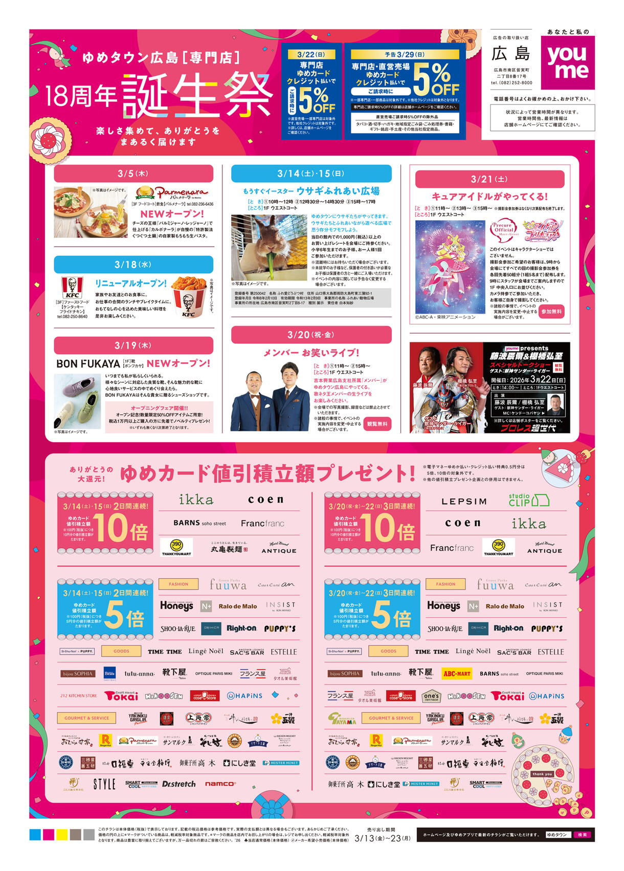 ゆめタウン広島 イベント/キャンペーン 3/13(金)~23(月) ゆめタウン広島 18周年誕生祭