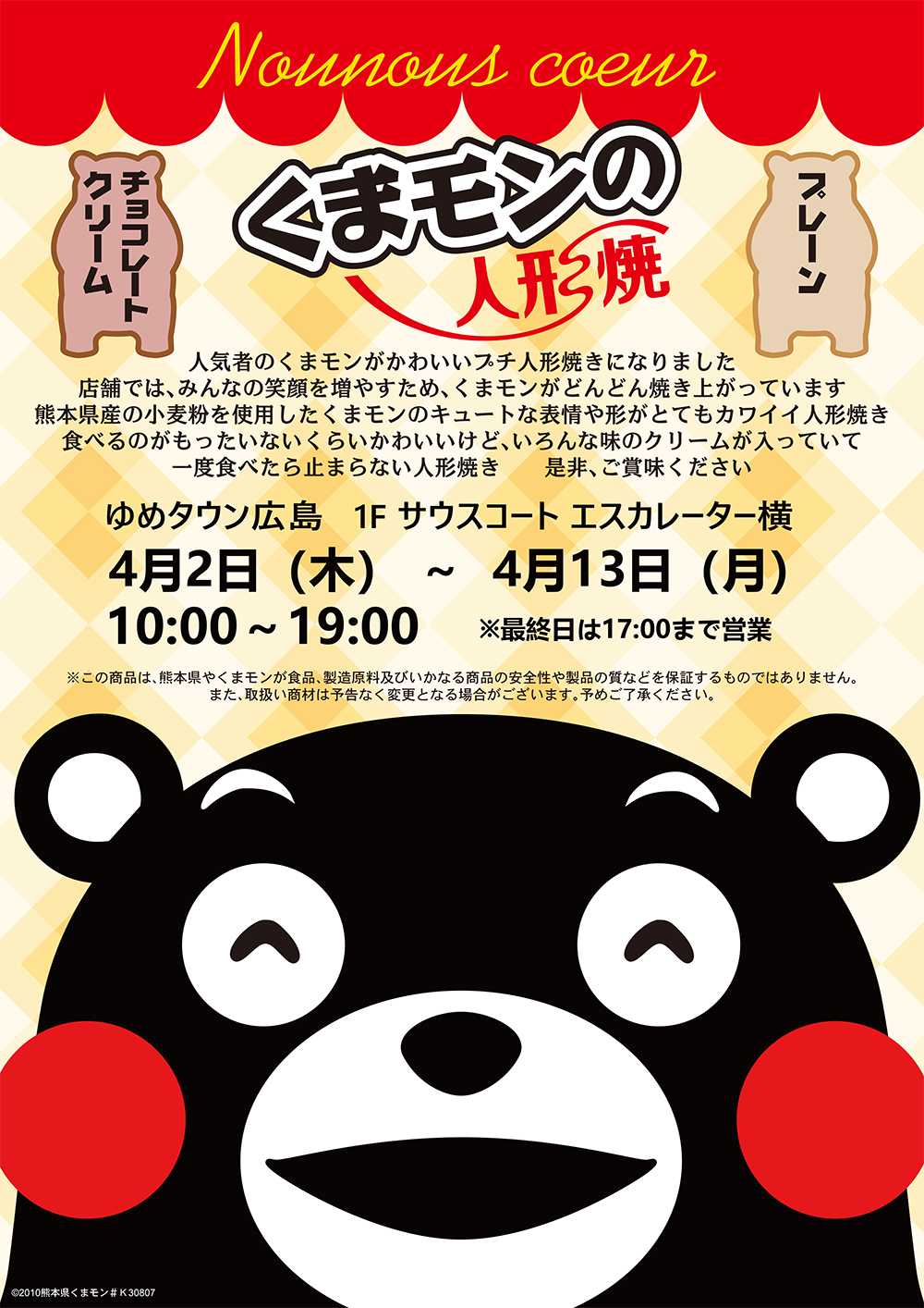 4/2(木)~13(月) くまモンの人形焼き 期間限定販売