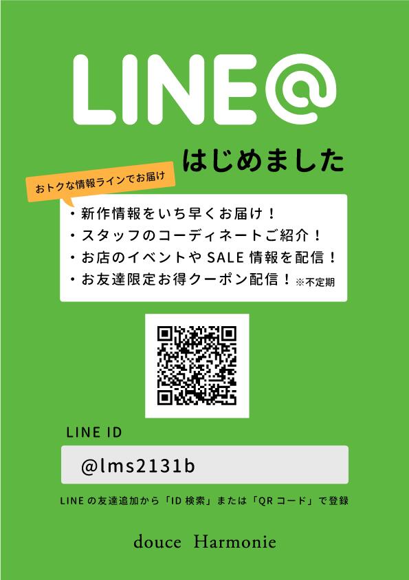 douce HarmonieではLINE@で新作のご紹介やお得なイベント情報をご案内しています♪