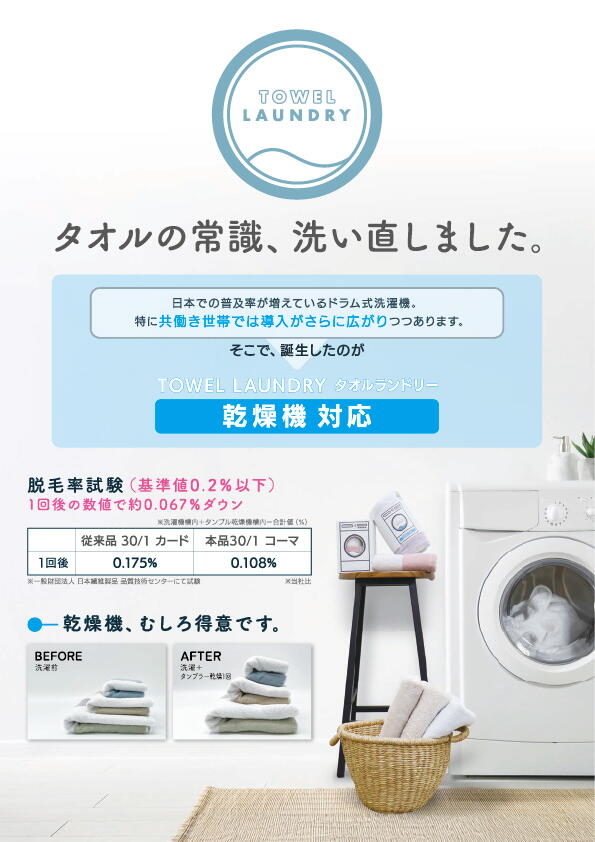 毛羽落ちを気にせずタンブラー乾燥ができるタオル