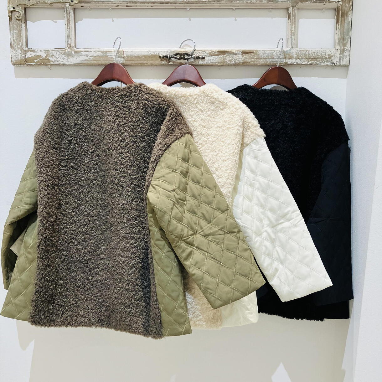 キルティングとボアの異素材切り替えデザインが目を惹くジャケット♪