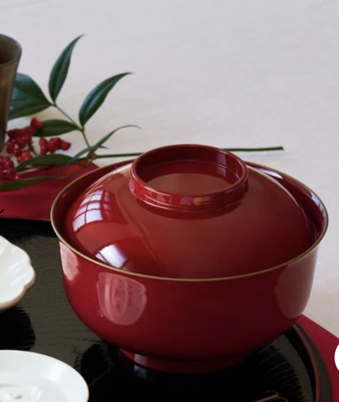 漆器の産地、石川県で職人がひとつひとつ丁寧に仕上げた、山中塗のフタ付きお椀。