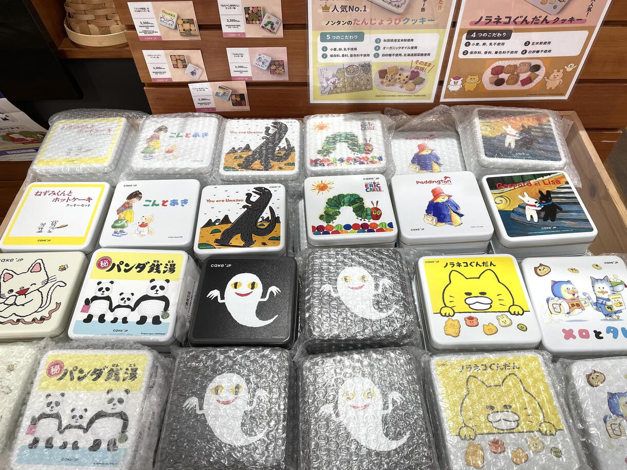 ノンタン・ノラネコぐんだん・ねないこだれだなど、人気絵本のキャラクターたちがかわいいクッキー缶になりました。