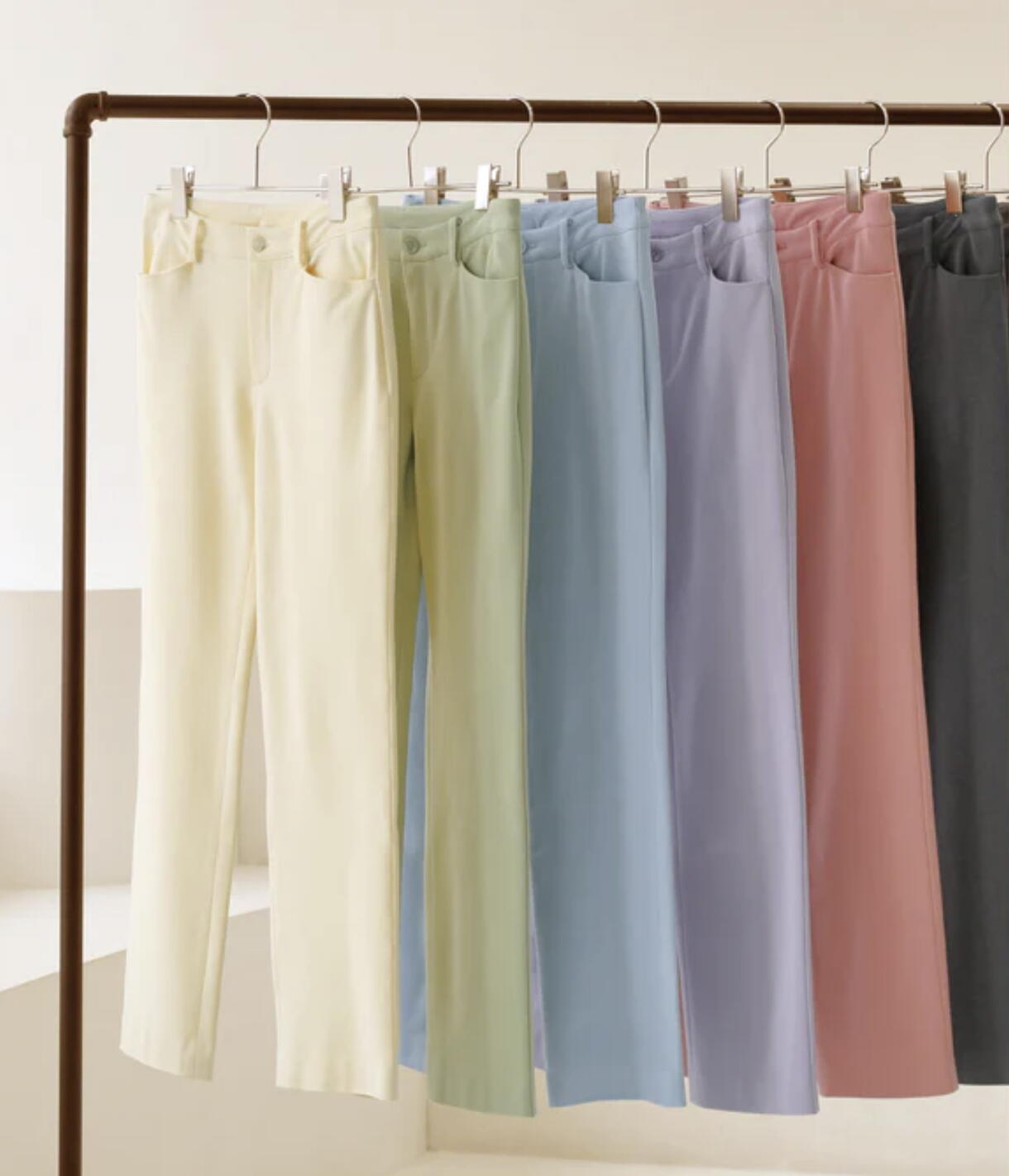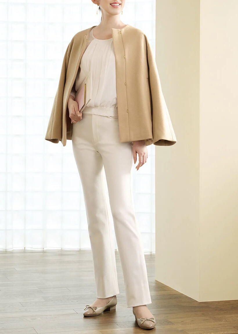 ・脚をスマートに魅せるストレッチ性と、高級感を湛えた生地の見た目で、冬の重たくなりがちなスタイルをすっきりまとめてくれる1本です。