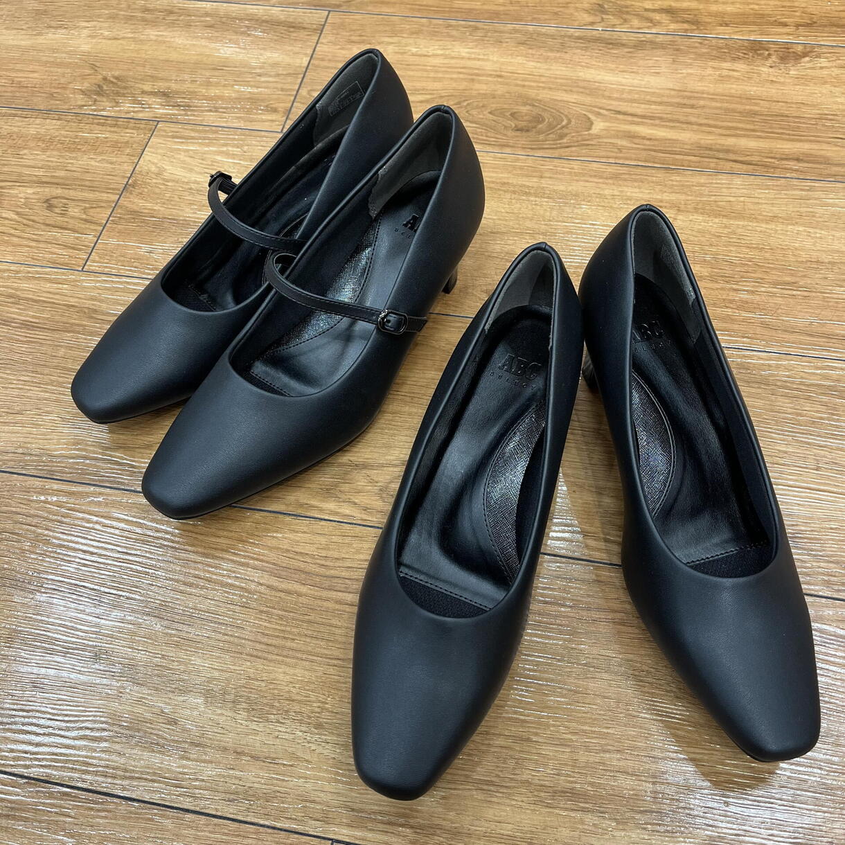 控えめなスクエアトゥを組み合せたデザインは