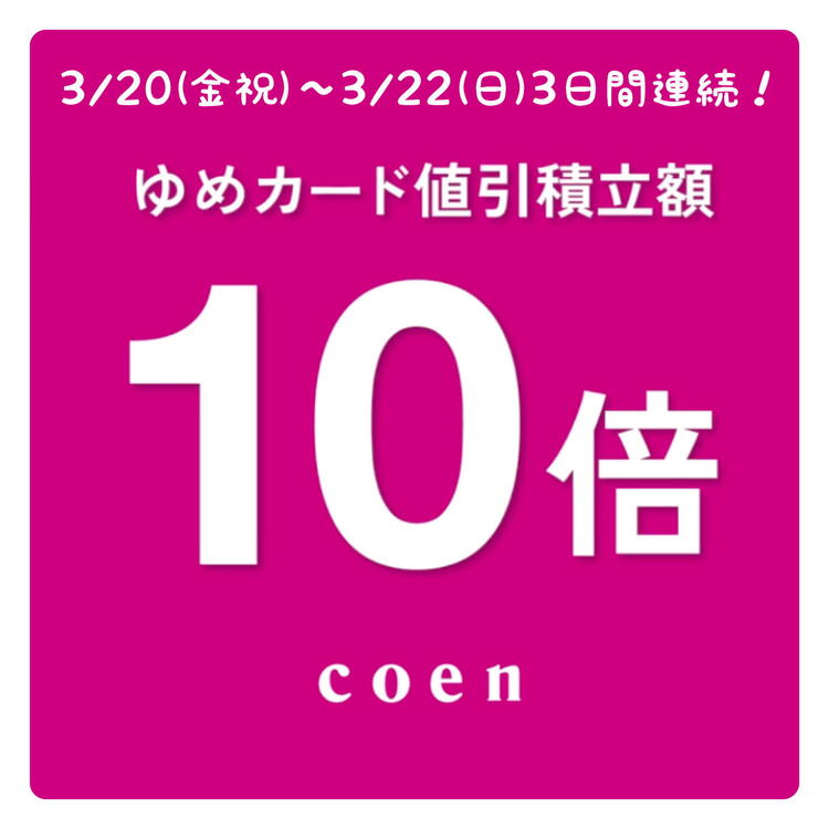 『3/20(金祝)〜3/22(日)3日間連続!ゆめカード値引積立額10倍♪』