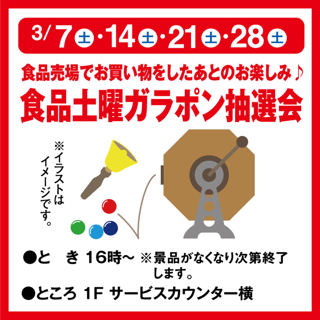 食品売場でお買い物をしたあとのお楽しみ♪ 食品土曜ガラポン抽選会