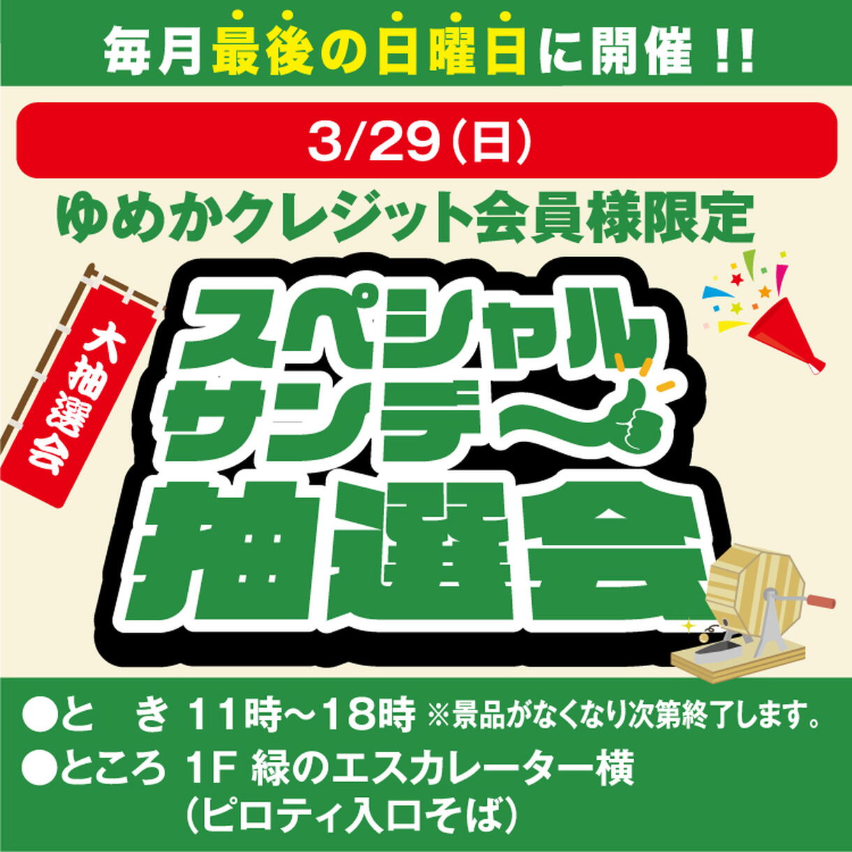 ゆめかクレジット会員様限定 スペシャルサンデー抽選会