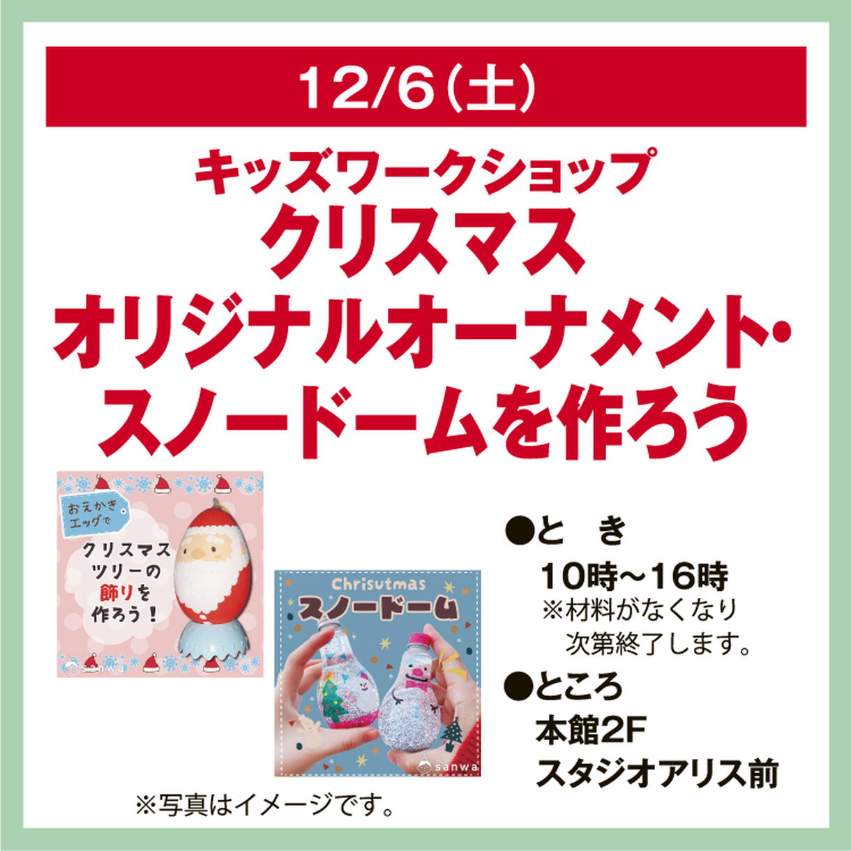 選べるキッズワークショップ!「オリジナルオーナメント」または「スノードーム」のどちらか1つ選んで参加しよう!