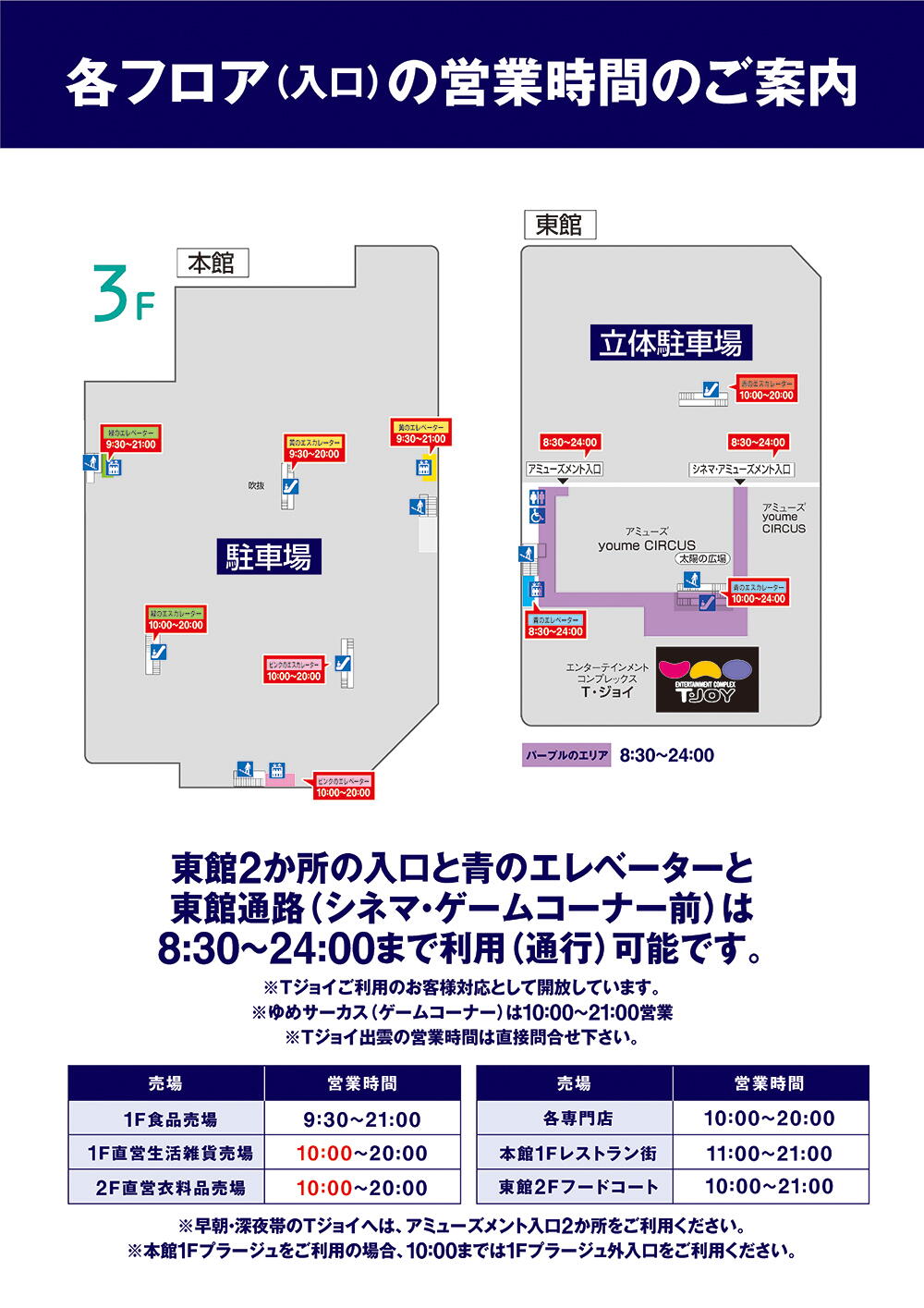 本館2F 直営衣料品売場(紳士・婦人・服飾・子供・文具)の開店時間がAM9:30→AM10:00に変わりました。