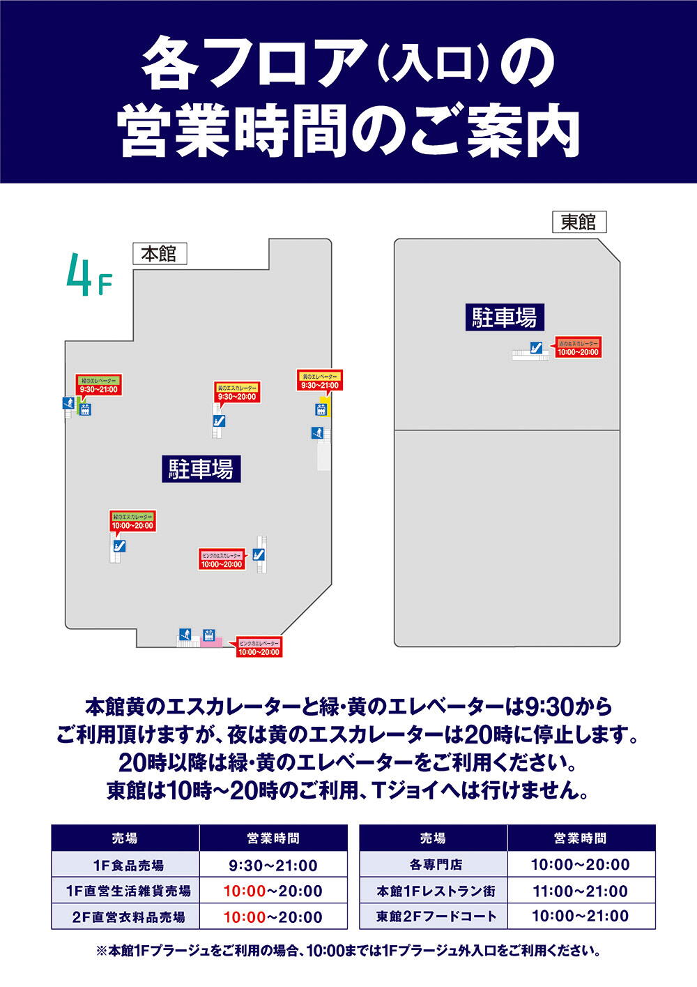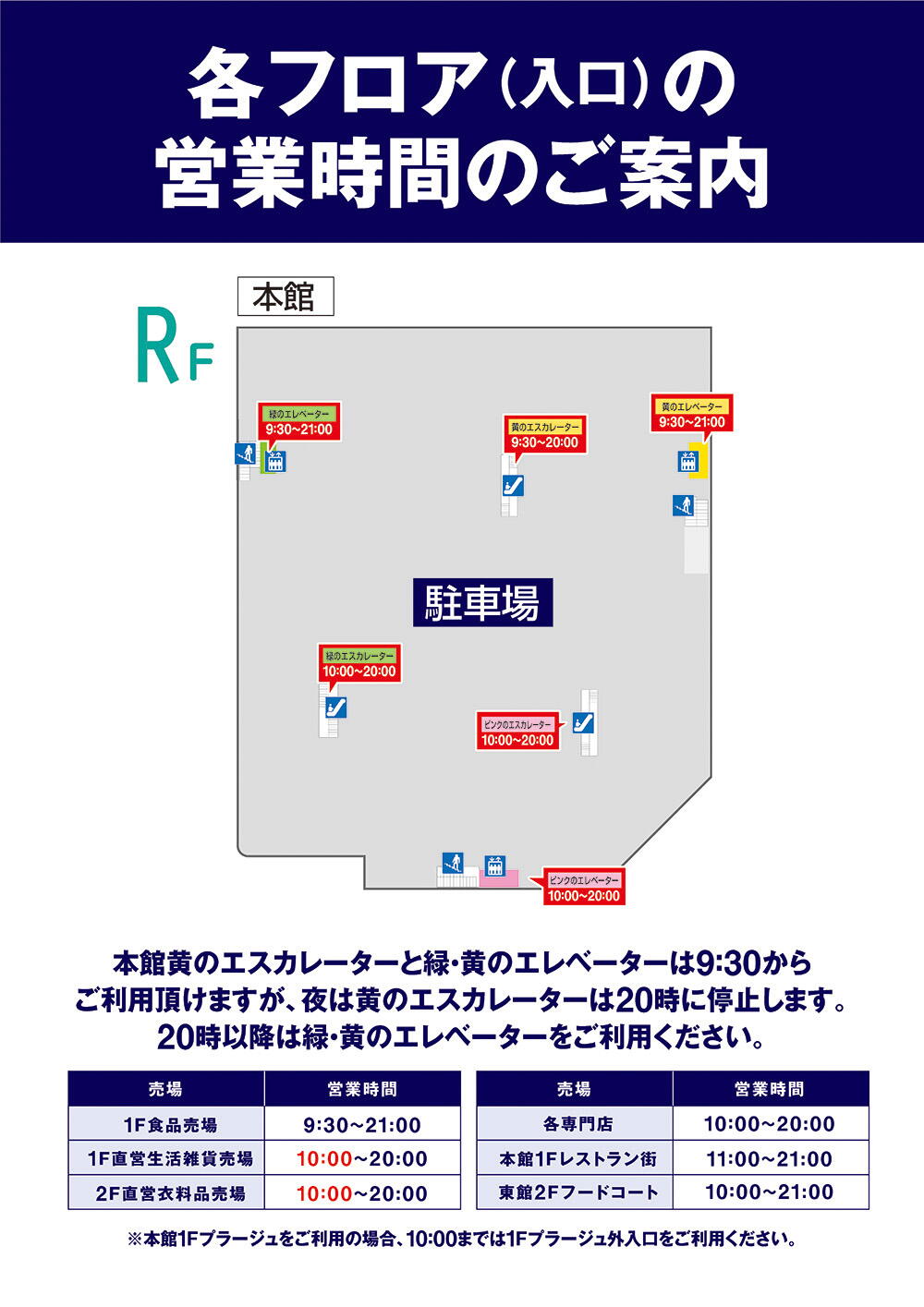 本館1F 食品売場・各専門店の営業時間に変更ありません。