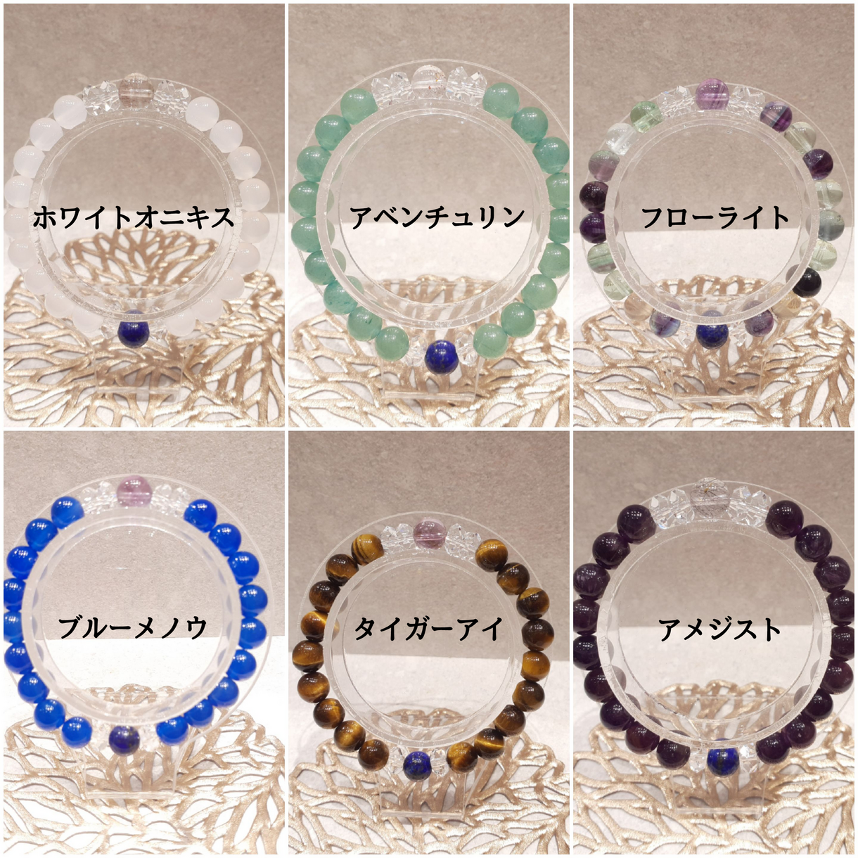 全てのブレスレットにスーパーセブンとラピスラズリが入ったブレスレットです