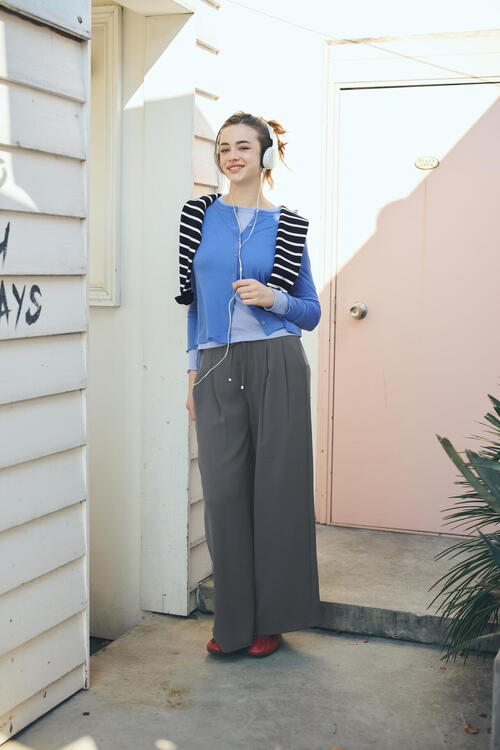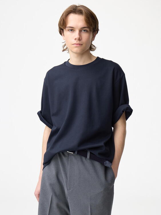 同素材ボトムスと合わせてワンピース風に着こなすのがおすすめです!