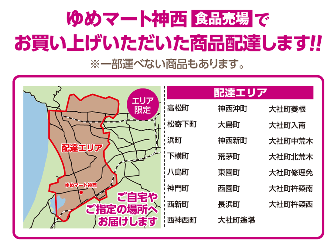 お買い上げいただいた商品 ご自宅やご指定の場所へ 配達します!