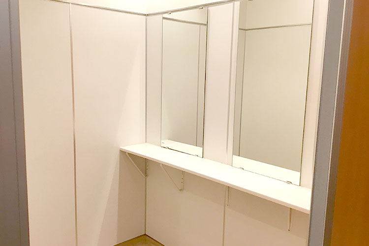 ママとお子さまがベビーカーで一緒にはいれるパウダールーム。