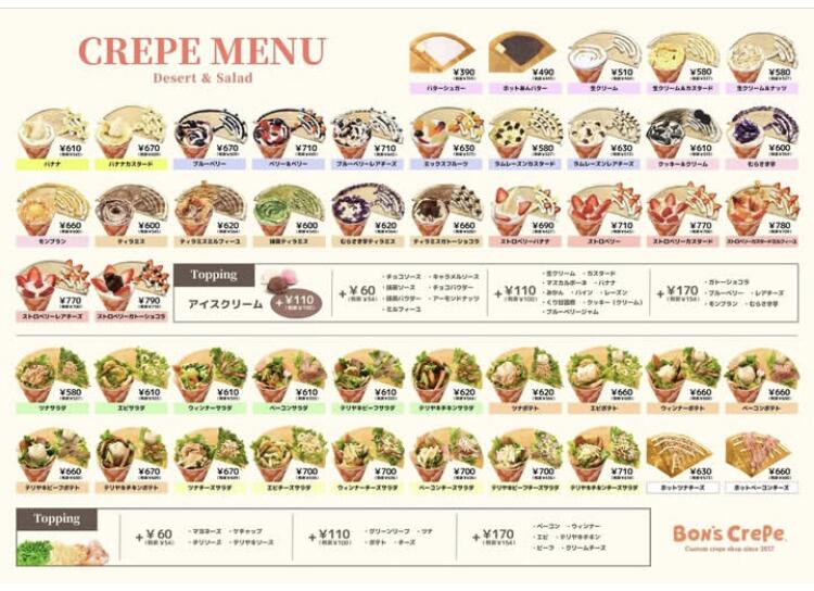 クレープメニュー ※税込価格(税抜価格)で表示しています