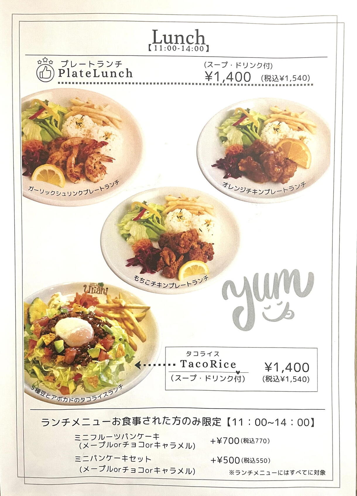 ランチメニューをご注文の方はミニパンケーキもセット価格でお付けできます。