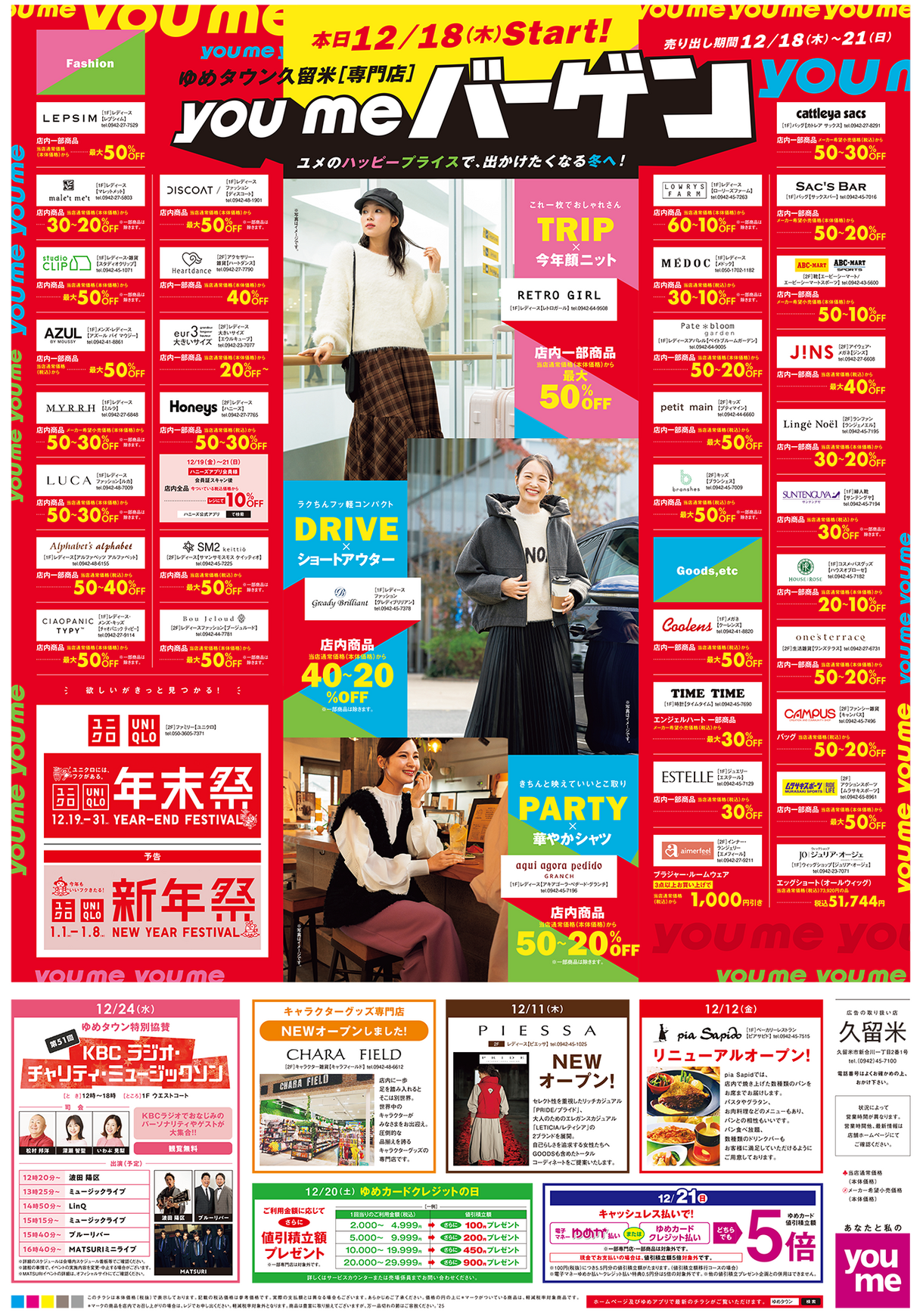 ゆめタウン久留米 イベント/キャンペーン 12/18(木)~21(日) ゆめタウン久留米 youmeバーゲン