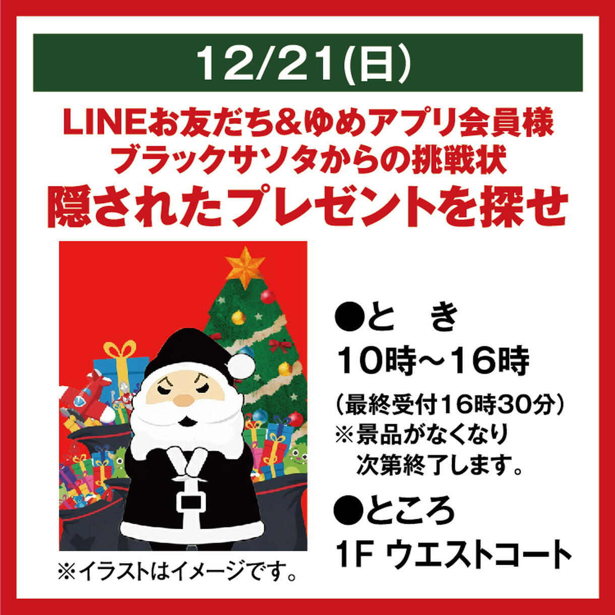 LINEお友だち&ゆめアプリ会員様 ブラックサソタからの挑戦状 隠されたプレゼントを探せ