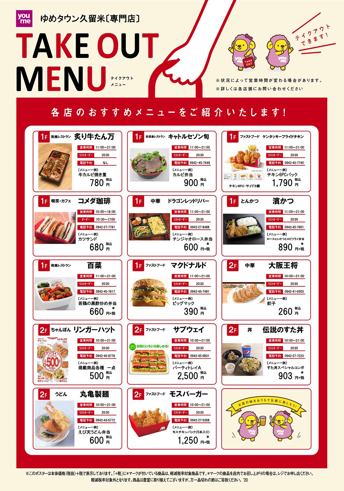 ゆめタウン久留米 イチオシ特集 [専門店]テイクアウトメニューのお知らせ