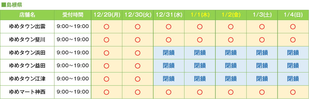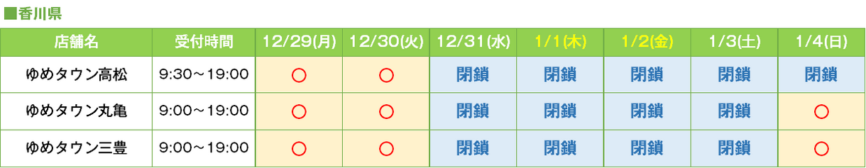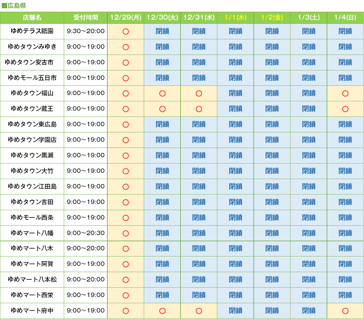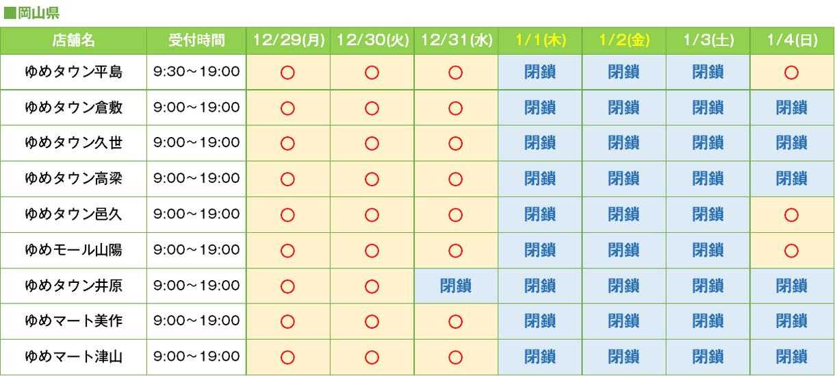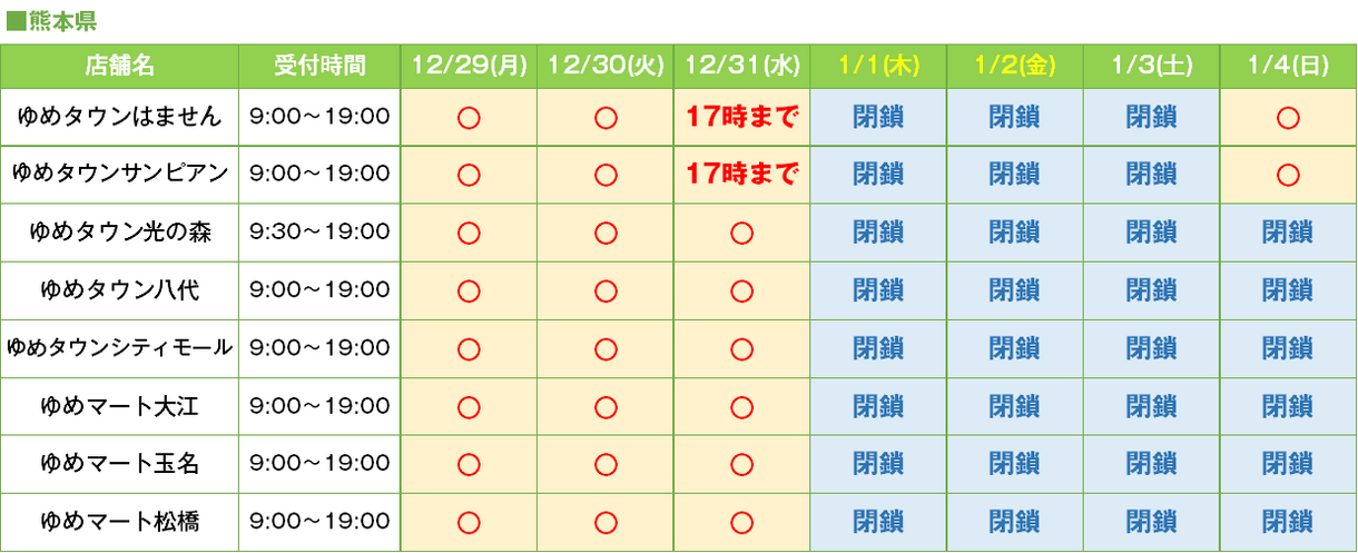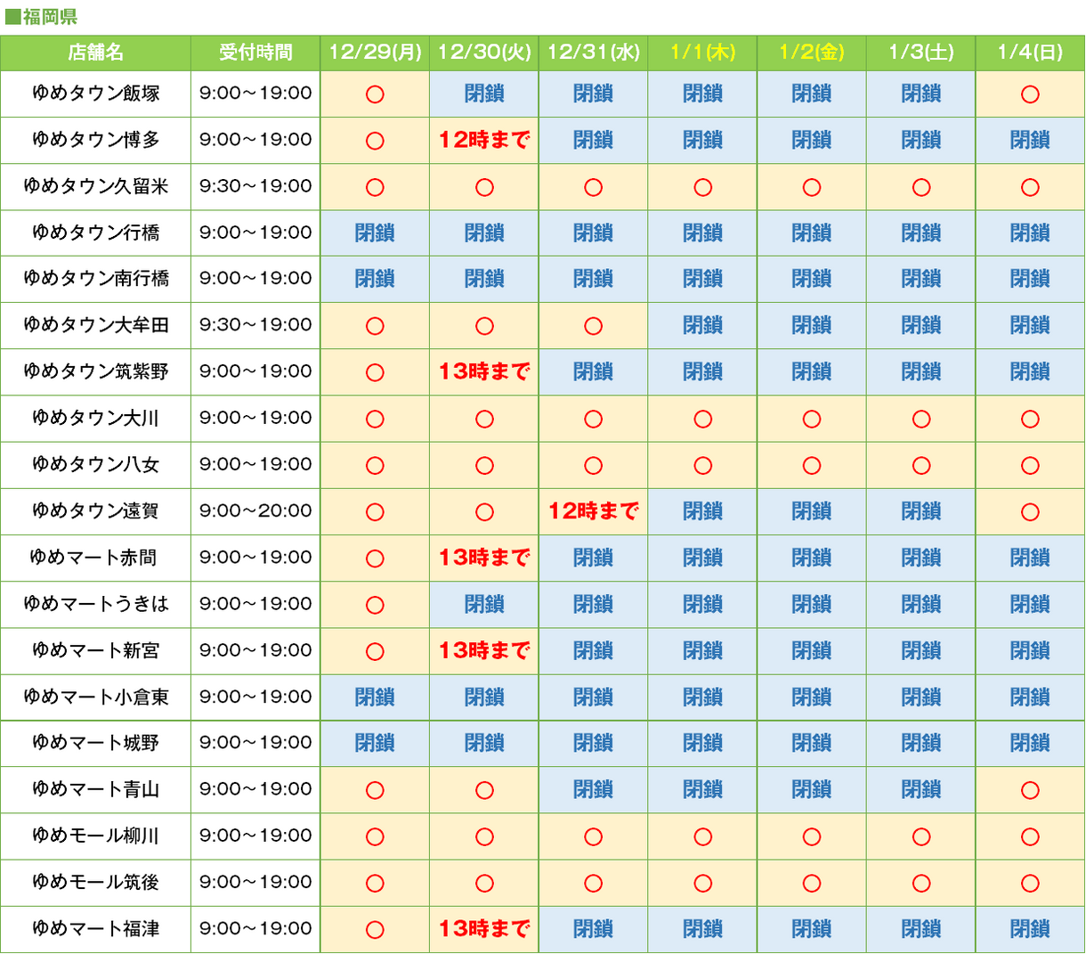 ゆめタウン久留米 お知らせ 「エコ・ステ」年末・年始の受付期間について