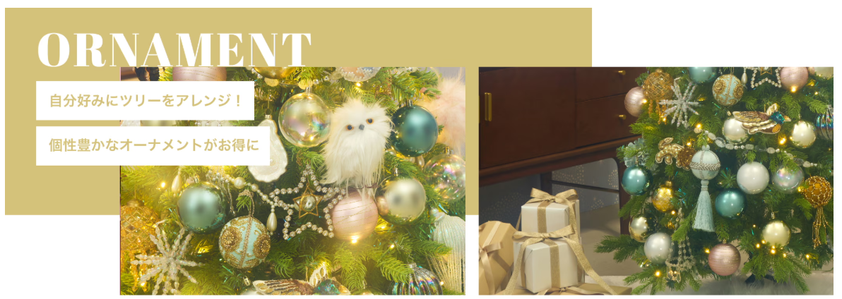 自分好みのオーナメントでクリスマスツリーを豪華に飾り付けしてみませんか(^^)?