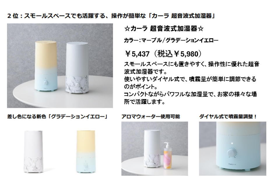 今回のランキングはインテリアとしても楽しめて、小型ながらしっかり加湿力のあるアイテムがランクインしました☆
