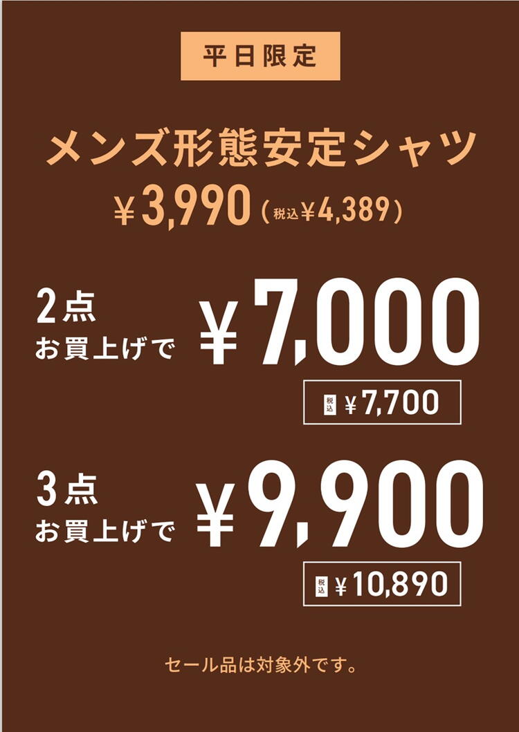 ※定価 税抜3,990円(税込4,389円)のメンズ長袖形態安定シャツのみが対象です