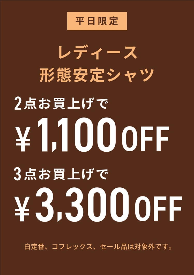※コフレックスシャツ・セール品・カジュアルシャツ・ブラウスは対象外です