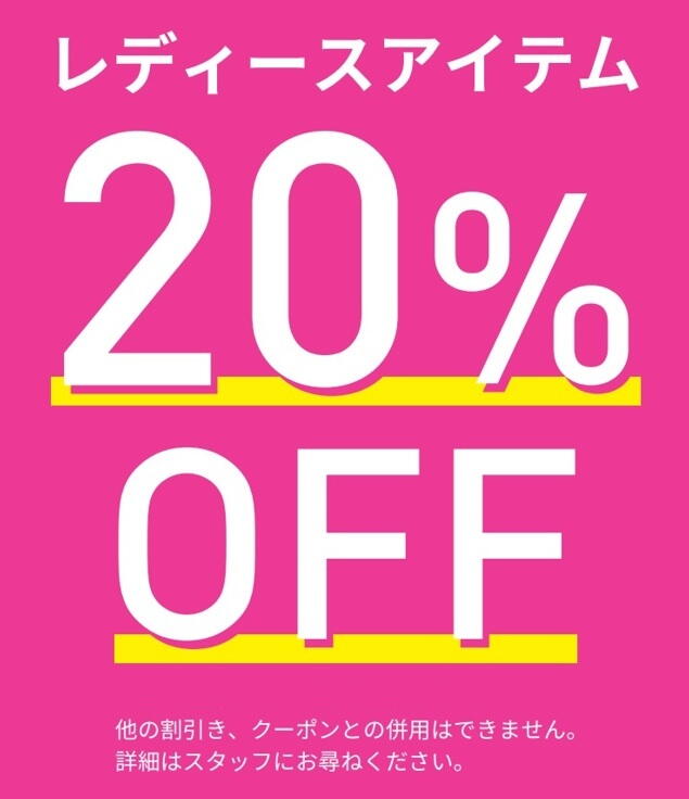 \レディースアイテムが表示価格よりレジにて20%OFF/