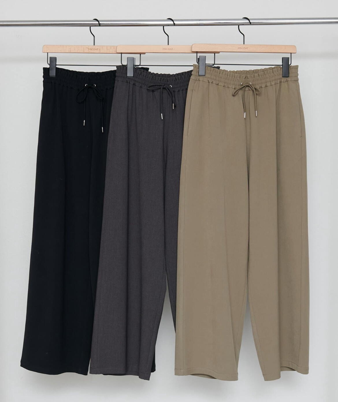 ボリューム感のあるニットやスウェットを合わせてもスッキリ見せる落ち感◎