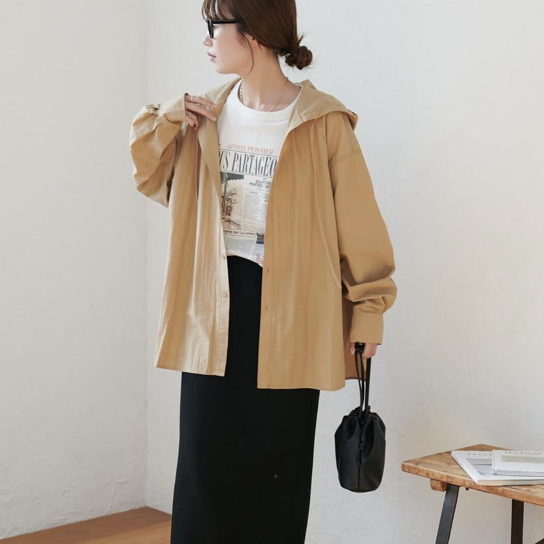 ワッシャーナイロンフード付きシャツ
