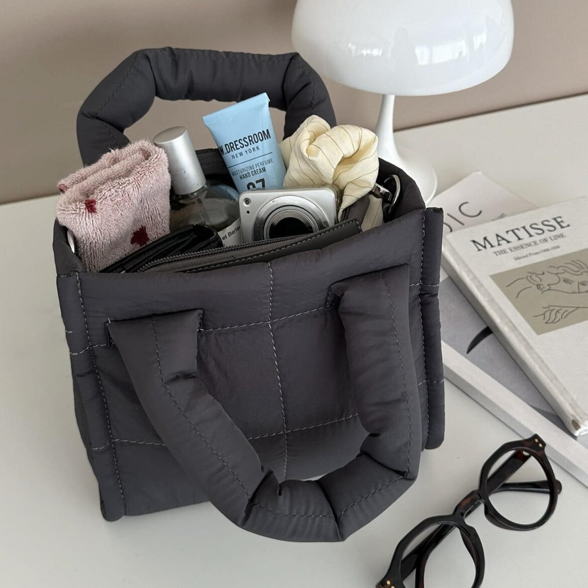 ふっくらとした立体的なキルティング素材が、コーディネートのアクセントに◎