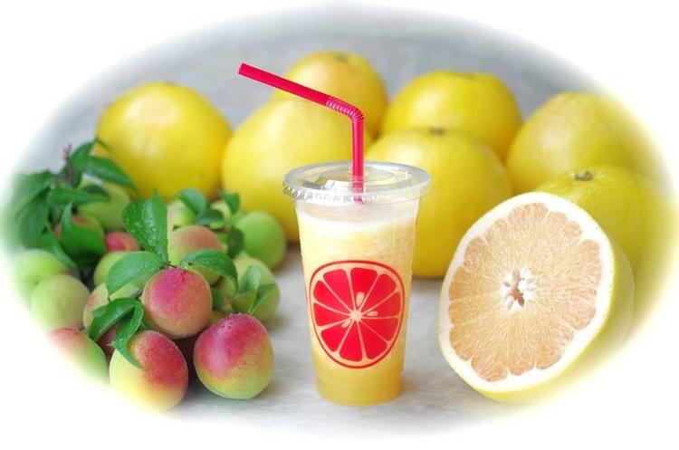 「くだものかふぇ」のフレッシュジュースは無添加です。市場より仕入れた新鮮なフルーツをその場でカット。オリジナルシロップは天然成分だけで作られています。